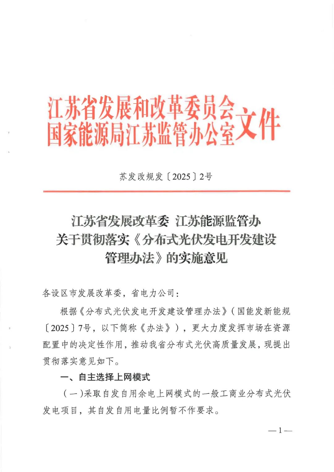 近日,江苏省发展改革委与江苏能源监管办联合印发《关于贯彻落实〈分布式光伏发电开发建设管理办法〉的实施意见》(苏发改规发〔2025〕2号),通过优化上网模式、简化备案流程、保障接网消纳、规范整村开发、强化安全管理,多维度破解分布式光伏发展痛点,为企业、投资者及从业者注入信心。
