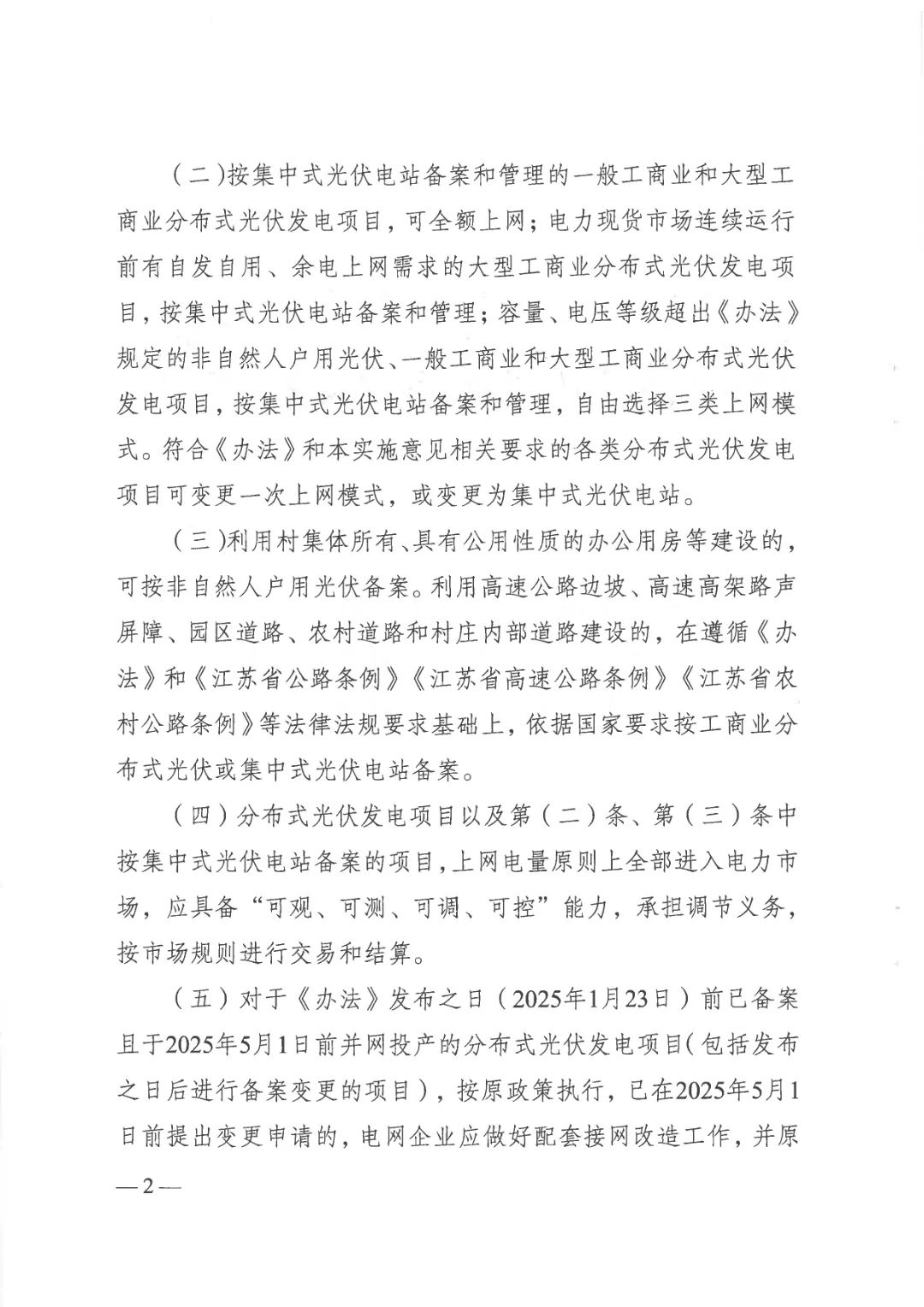 • 针对利用村集体场所、公路边坡等特殊地点建设的项目,新政明确备案规则,上网电量原则上进入电力市场交易结算。同时,针对2025年1月23日前已备案项目设置过渡期政策,确保新旧政策平稳衔接,避免市场波动。