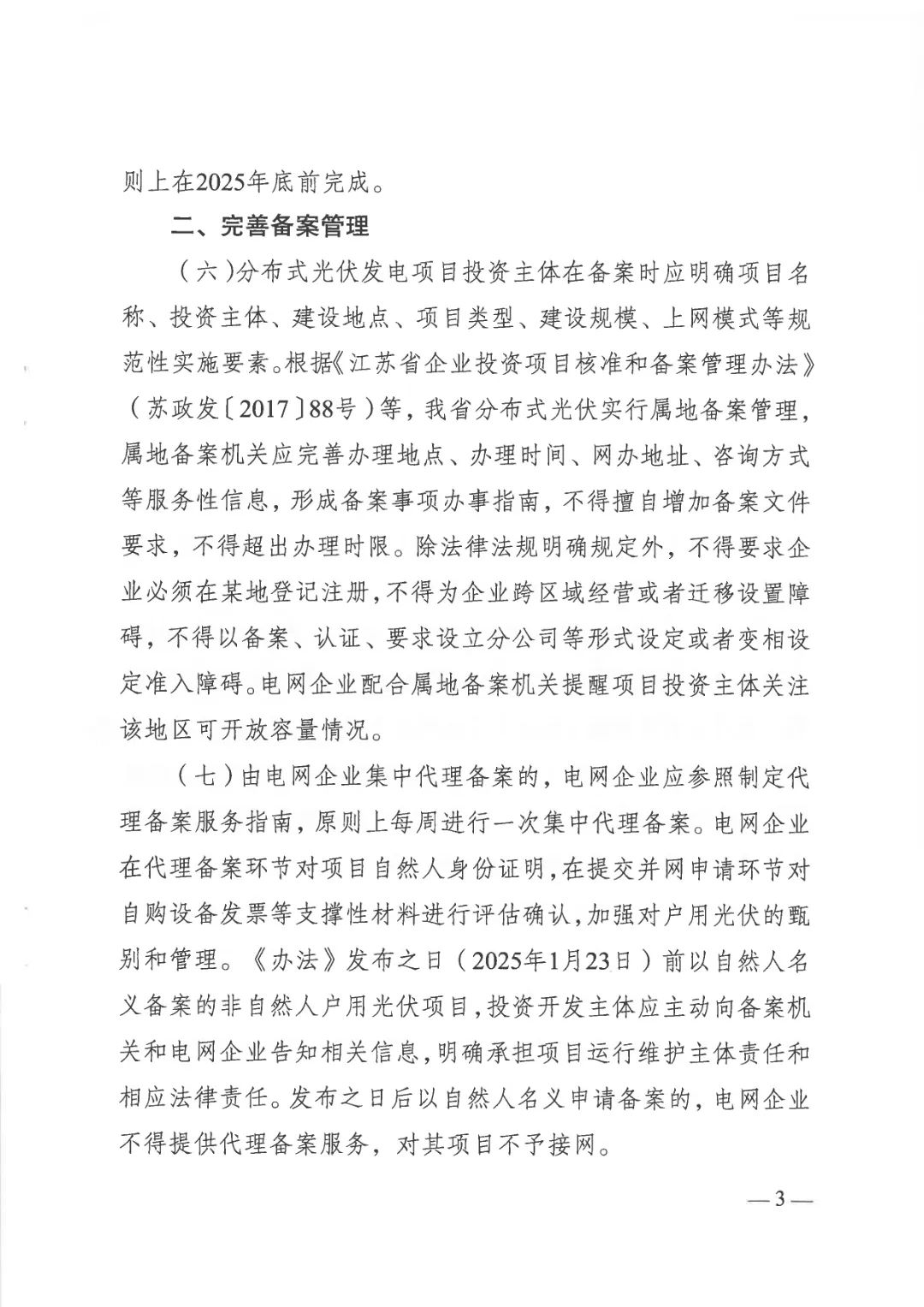 •新政要求,电网企业集中代理备案需制定服务指南,原则上每周一次。严格规范自然人名义备案项目,区分“办法发布前”“发布后”不同情形分类处理,强化项目甄别,从源头杜绝不合规操作,维护市场秩序。